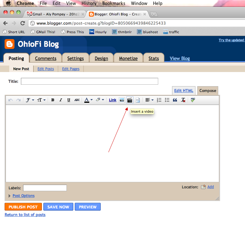 1. Click on the movie slate icon (it's in-between the icon that looks like a photo and the icon that looks like a torn piece of paper).